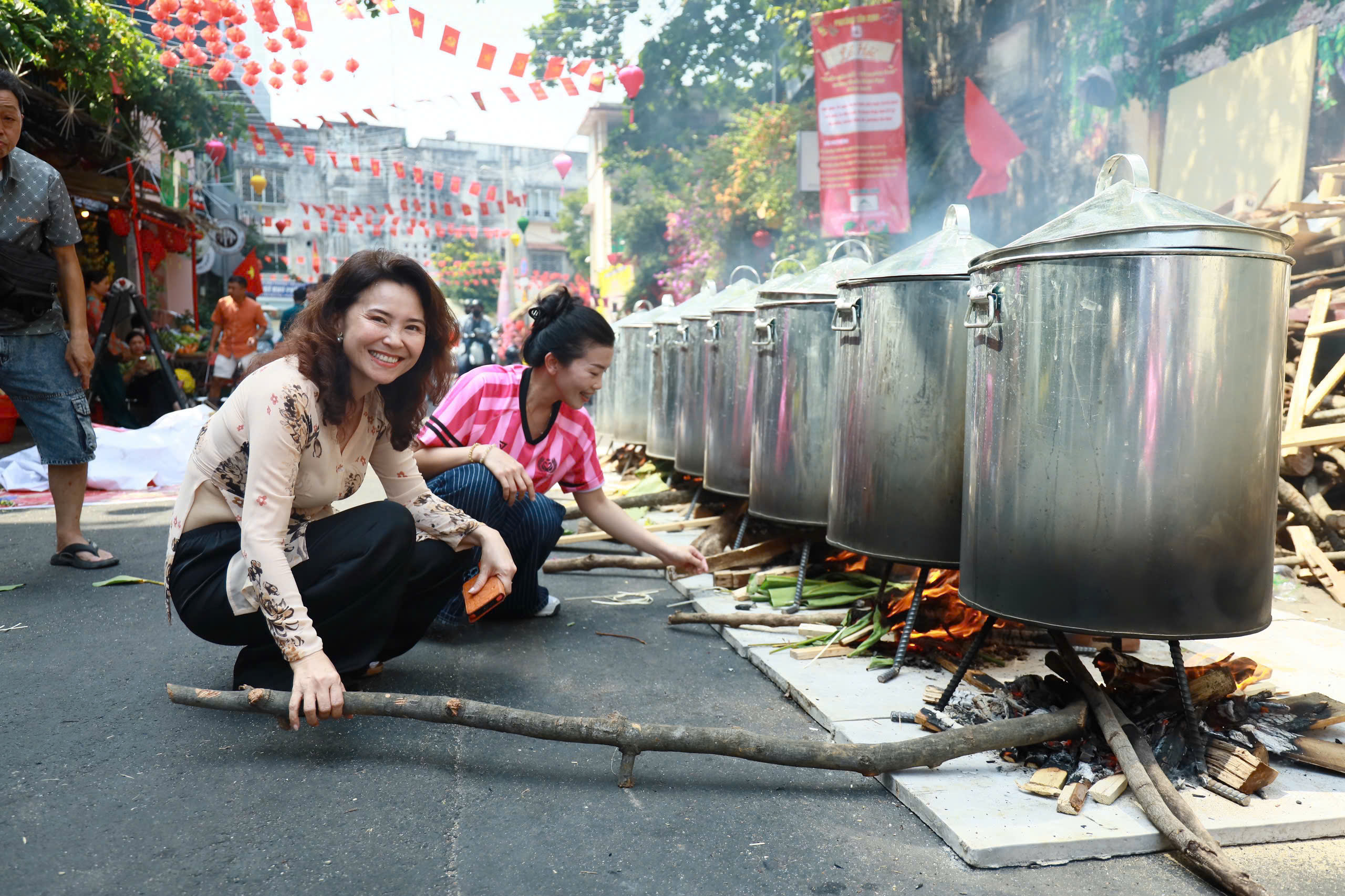 Giữa không gian rực rỡ đường hoa, Phố Ông Đồ, trò chơi dân gian và tiếng cười rộn ràng, hình ảnh những nồi bánh chưng nghi ngút khói đã trở thành trái tim của ngày hội.