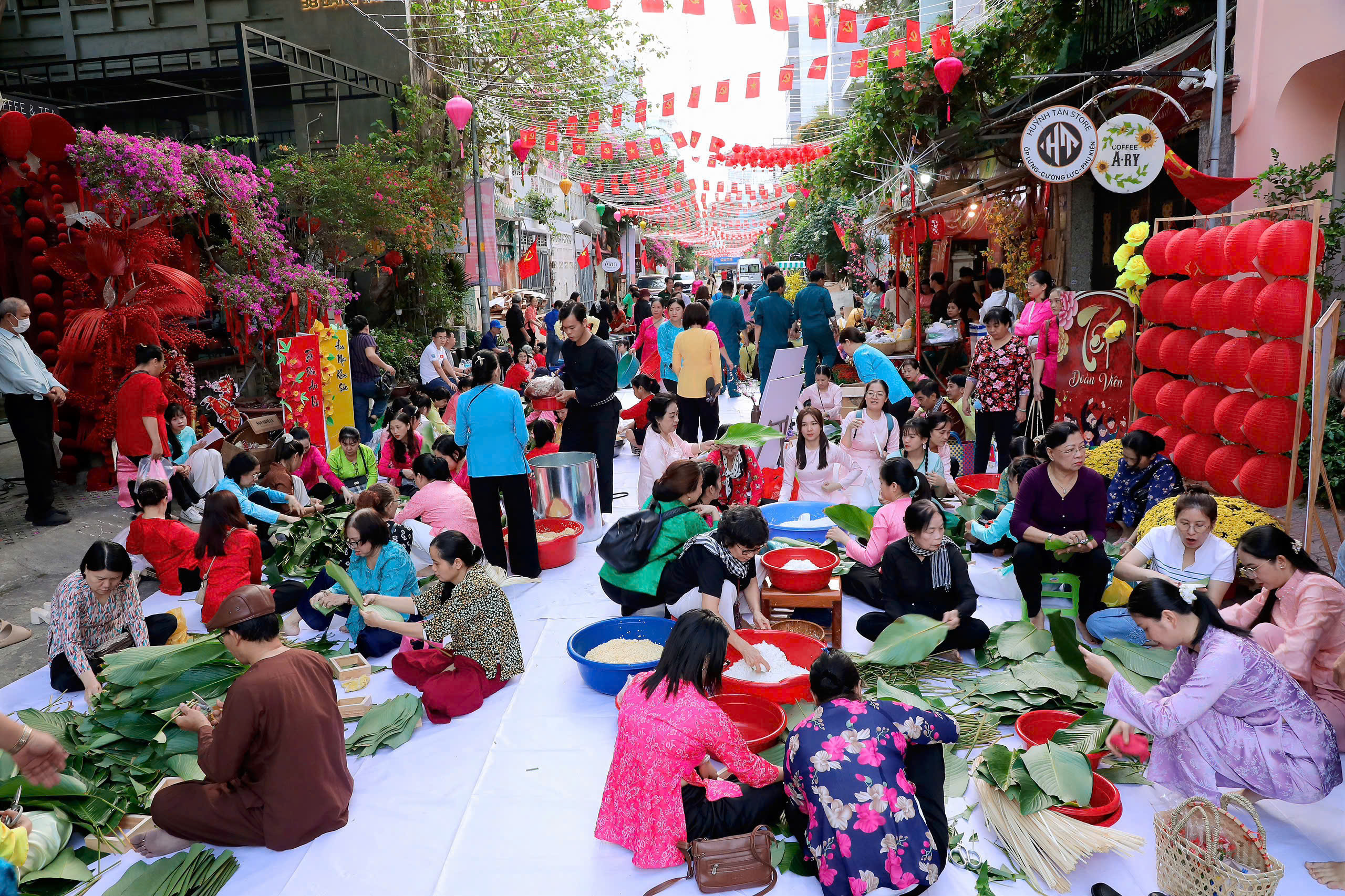 “Góc phố Ngày Tết” – 20 khu phố cùng đơn vị tham dự, mỗi góc trưng bày truyền tải một nét Tết riêng, từ chợ quê đến cổng tre, bánh mứt, câu đối…